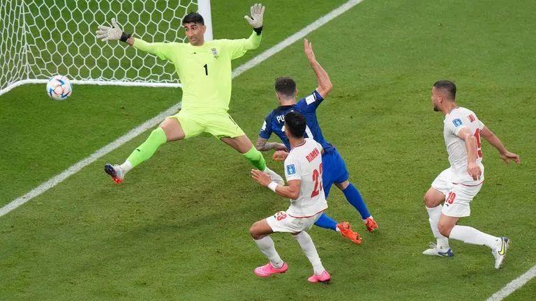 基於實力的差距,再加上伊朗球員超負荷的心理壓力,奎羅斯還是未能在自己第13場世界盃比賽中取得最重要的勝利。美國隊始終佔據着主動,德斯特和小維阿給伊朗防線邊路施加了太大的壓力,上半場的持續高壓終於在第38分鐘實現突破:效力尤文的麥肯尼中場45度吊球,前插的德斯特頭球傳中,切爾西中場普利西奇包抄破門,3位歐洲頂級豪門球員的配合,輕鬆撕破伊朗隊半數球員在本土效力的防線。