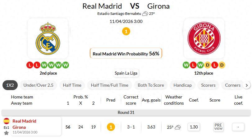 皇馬仍在爲西甲冠軍頭銜全力衝刺,主場搶分慾望強烈,面對無慾無求且客場防守糟糕的赫羅納,能否順利拿下三分縮小和榜首的分差,本場比賽極具看點。