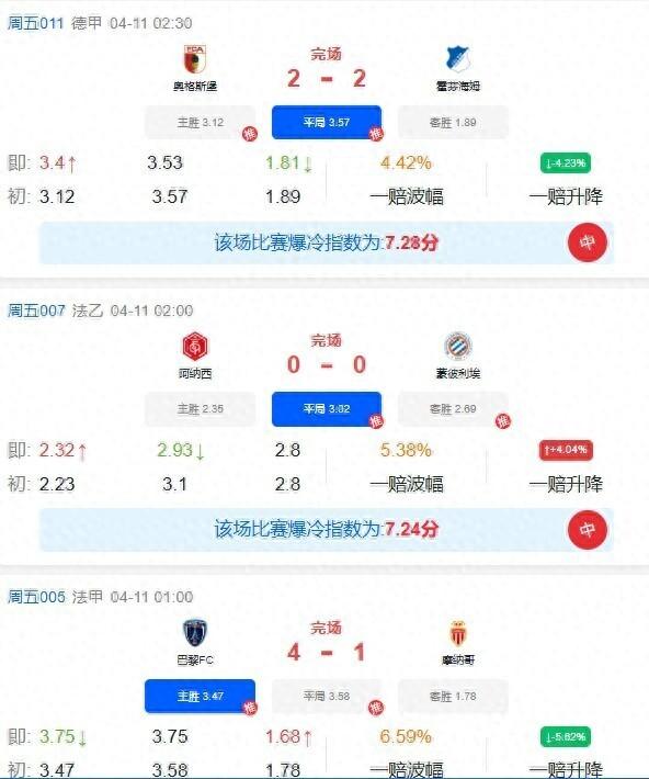 北京時間4月11日,【球勝比分APP】冷門預警爲大家羅列各項足球讓球勝平負和足球勝平負的賽事誤差較大場次,各位球友敬請留意。