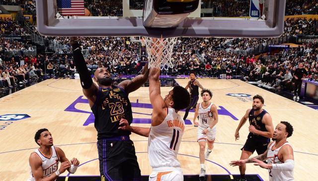 湖人在4月10日順利擊敗缺少庫裏的勇士。詹姆斯在比賽中遭遇手指挫傷,但是在接受冰敷之後繼續出戰。4月11日對陣太陽隊,詹姆斯身先士卒,他在第一節就火力全開,4投全中,三分球2中2,罰球5中4,砍下14分1籃板5助攻1搶斷0失誤。在詹姆斯的率領下,湖人首節打出33比24。湖人其他球員肯納德、八村壘、艾頓以及復出的斯瑪特都紛紛發威,最終取得了一場大勝。