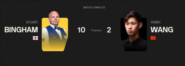 斯諾克世錦賽80進48輪次,王信伯2比10不敵賓漢姆,無緣48強。賓漢姆打出2杆破百和7杆50+,王信伯打出2杆50+。本場比賽,賓漢姆一上來送出9連鞭,以9比0領先王信伯,隨後王信伯連追2局,最終2比10不敵賓漢姆。