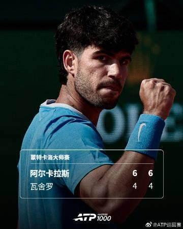 ATP1000蒙特卡洛大師賽半決賽,阿爾卡拉斯2比0瓦舍羅晉級決賽。頭號種子阿爾卡拉斯以6比4 6比4擊敗主場作戰的瓦舍羅,取得賽會9連勝,距離衛冕一勝之遙。這是卡洛斯職業生涯的第10個大師賽決賽(8冠1亞),決賽他將與老對手辛納爭奪最終冠軍!