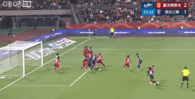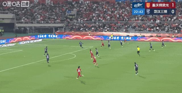門將和後防線的雙重失誤,並沒有讓球隊警醒,僅8分鐘後,張志雄頭球再下一城。肯帕努從右側的傳中,精準找到張志雄,在他兩邊參與防守的球員,甚至都沒有起跳爭頂,最終讓其輕鬆擴大比分。僅僅是上半場開局還不到一半的時間,三鎮就處於兩球落後的狀態,情況與上輪對陣深圳新鵬城如出一轍。