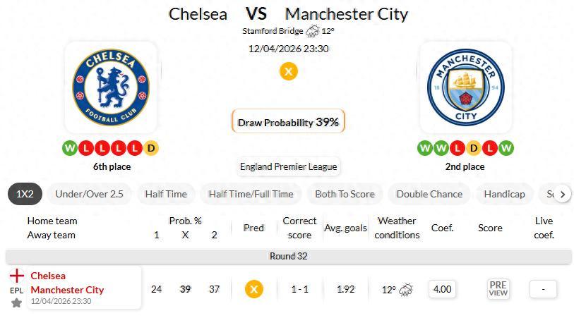 切爾西坐鎮主場力爭打破對曼城的不勝魔咒,搶分保住歐戰競爭力;曼城客場搶分繼續緊追榜首阿森納,本場結果將同時影響英超爭冠和歐戰資格的走勢,看點十足。