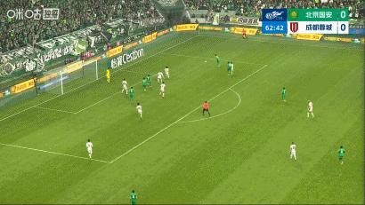 第56分鐘,費利佩頭球破門被吹越位在線。第63分鐘,柏楊分球,李磊左路轉移,曹永競傳中,張玉寧門前頭球破門,國安1比0領先蓉城。