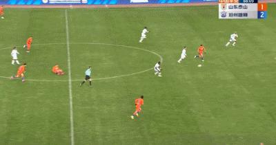 第79分鐘,下半場替補登場的吳興涵近距離捅穿襠破門,山東泰山把比分改寫爲1-2。