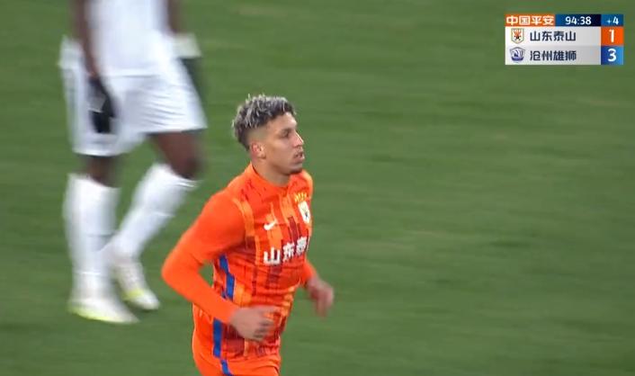 補時階段,吳興涵造點克雷桑主罰點球命中,山東泰山再扳回一城,最終仍然以2-3的比分輸掉了比賽。