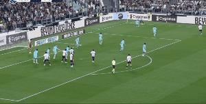 第57分鐘,麥肯尼傳中,赫夫朗·圖拉姆頭球破門,尤文2比0領先。