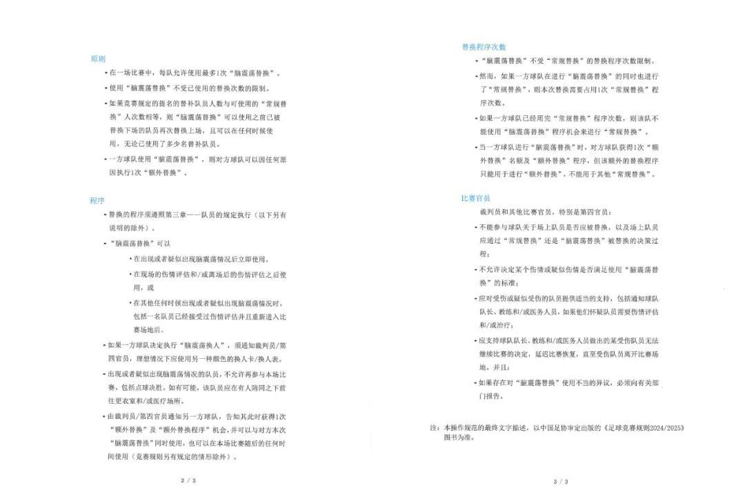 其一,規則執行與監督體系需要加強。中國職業聯賽落地國際規則,需要配套監督、審覈、追責機制,對規則濫用行爲加強約束、懲罰。球隊濫用腦震盪換人如果無需承擔任何風險,裁判無權干預,賽後複覈和處罰不嚴格,這種情況極容易導致規則被濫用。