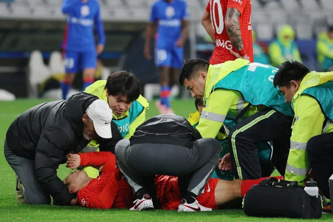 海港教練組隨即向主裁判李海新申請啓動腦震盪特殊換人規則。全程目睹這次傷情轉換的主裁判李海新面露無奈笑容,同意了換人申請。第77分鐘,傅歡替補登場,上海海港得以保持11人完整陣容應戰,避免了少打一人的絕境。