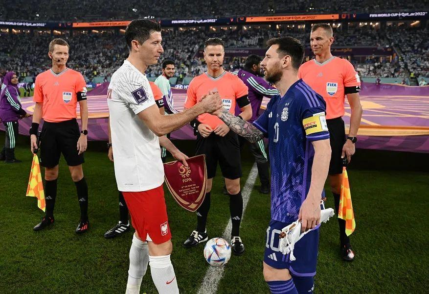 進場前的球員通道里,梅西罕見地露出輕鬆的笑容,當他主動和身邊的小球童握手時,小姑娘的眼裏滿是崇拜之意。對於梅西來說,這是他在世界盃上的紀錄之戰。本場是他第22次代表阿根廷出戰世界盃,不管他距離馬拉多納的成就有多遠,至少在出場次數上,他已經是阿根廷在世界盃上的第一人。距離阿根廷10號兩米之外,是一臉肅殺之氣的萊萬,冷峻的面孔掩蓋不住他的戰意——只可惜,這樣的殺氣只存在於比賽開始之前。