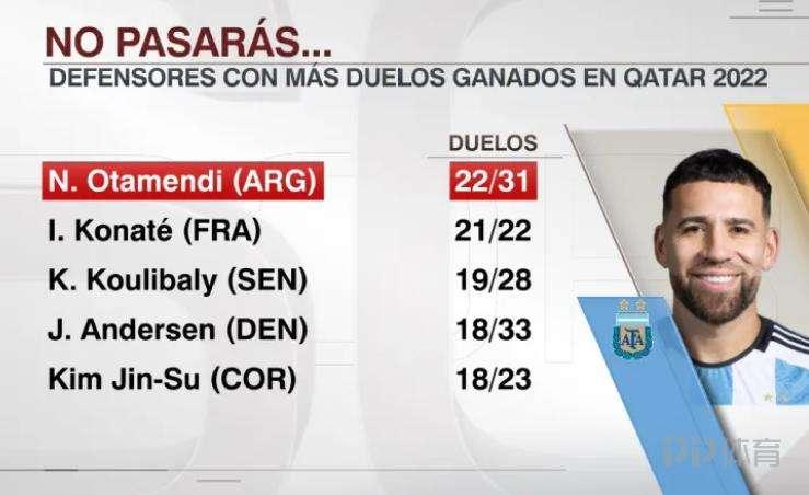 世界盃小組賽末輪,阿根廷2-0戰勝波蘭,以C組第一名出線。阿根廷中衛奧塔門迪在3場小組賽中分別贏得了(9次、11次、2次)對抗,總計31次對抗機會贏得了22次,目前這一數據是所有球員中最高的。本屆世界盃至今成功贏得對抗榜:1.奧塔門迪(阿根廷):22/312.科內特(法國):21/223.庫利巴利(塞內加爾):19/284.安德森(丹麥):18/334.金珍洙(韓國):18/23