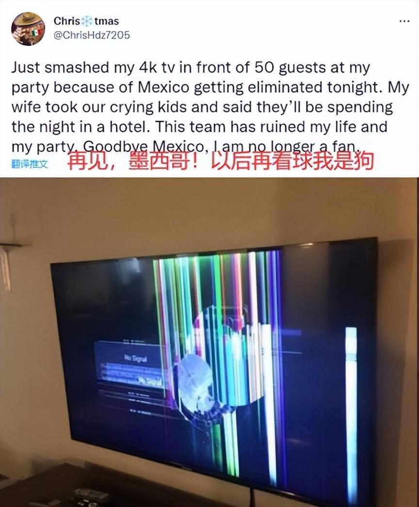 世界盃出局後,墨西哥主帥馬蒂諾親自承認自己合同到期後將離任。而現場見證球隊贏球出局的小男孩痛哭不已,美女球迷也是雙目無神一時間無法接受,而在家看球的一位男球迷彷彿甦醒附體,怒砸了家裏的48K高清電視。