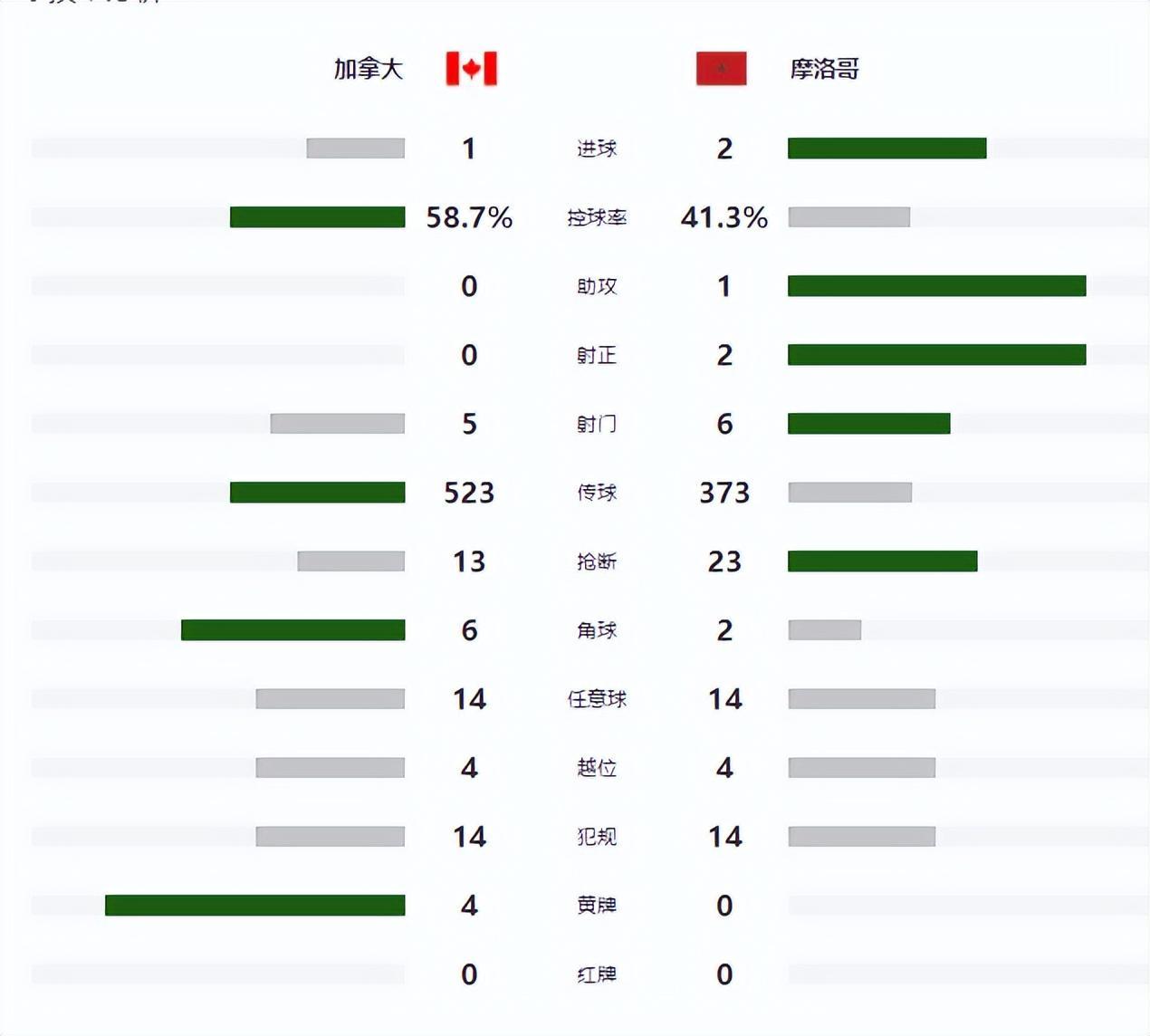 此後,雙方都無法再次改寫比分,最終摩洛哥2-1擊敗加拿大。