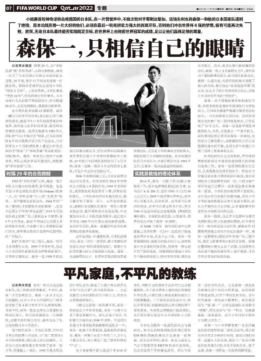 去年亞洲區12強賽初期,日本隊戰績不佳,森保一帥位一度堪憂,被日本媒體和球迷認爲是“球隊最短的短板”。隨着日本隊憑藉強大的人才儲備漸入佳境,森保一也逐漸得到認可。世界盃首戰擊敗世界冠軍德國隊,尤其是下半場神來之筆的換人,徹底征服了日本媒體和球迷。而擊敗德國隊的日本球員中,大部分都出生在1993年之後,在森保一看來就是宿命的輪轉。