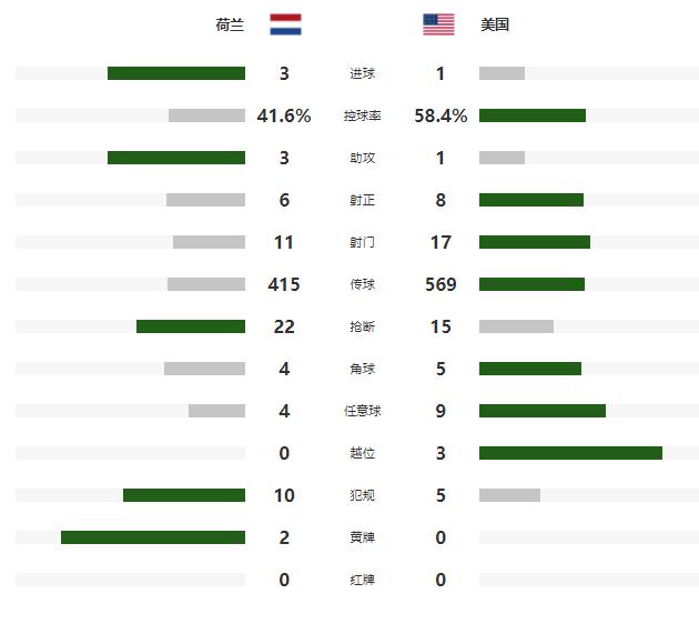 此後,雙方均無法再次改寫比分,最終荷蘭3-1戰勝美國。