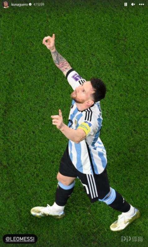 阿圭羅曬出了梅西的賽場照,此役梅西迎來生涯千場里程碑,併爲潘帕斯雄鷹首開記錄。