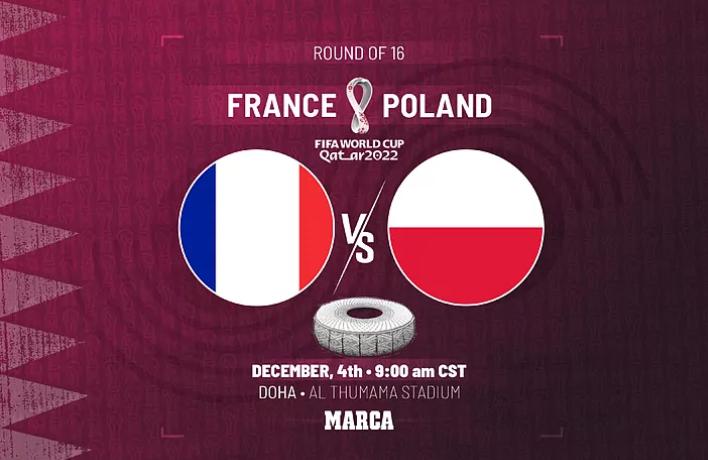 北京時間12月4日23:00,世界盃1/8決賽,法國對陣波蘭 。