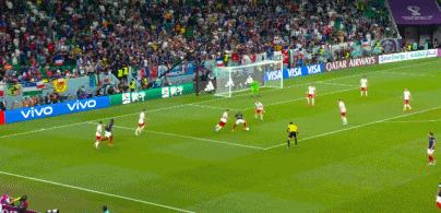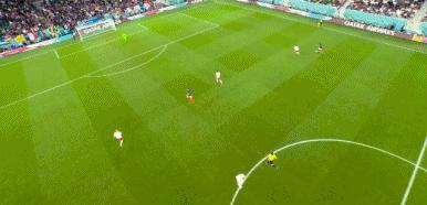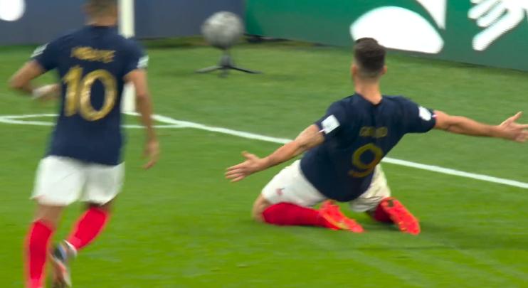 第44分鐘,姆巴佩送出直塞,吉魯禁區左側得球左腳抽射破門,法國1-0領先波蘭。