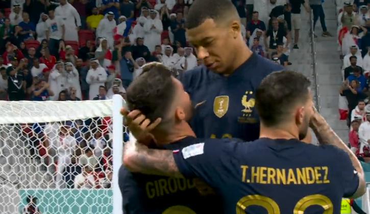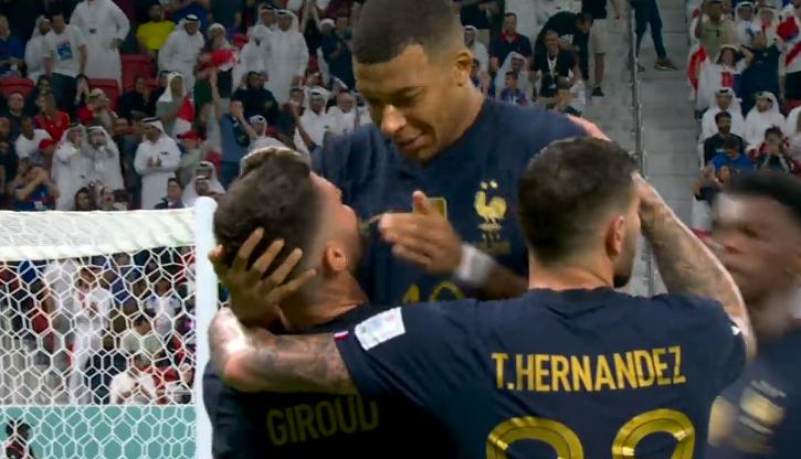 世界盃1/8決賽,吉魯和姆巴佩包辦全隊的3粒進球,最終幫助法國3-1擊敗波蘭,順利晉級8強。