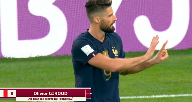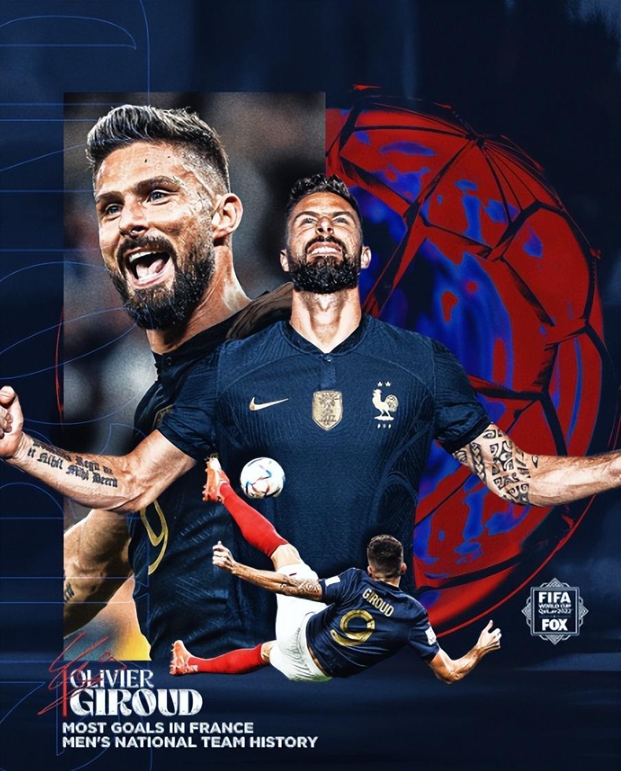 世界盃1/8決賽,36歲的吉魯打進首開紀錄進球,最終幫助法國3比1擊敗波蘭,順利晉級8強。這是吉魯打進的首個世界盃淘汰賽進球,他也憑藉着這個進球,超越了前輩亨利,以52球獨享法國射手王寶座。