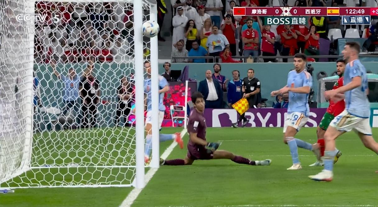 北京時間12月6日23:00,世界盃1/8決賽,摩洛哥對陣西班牙。雙方在常規時間90分鐘內互交白卷;加時賽,摩洛哥替補前鋒謝迪拉單刀不進,西班牙這邊薩拉維亞讀秒絕殺被立柱拒絕,雙方以0比0的比分進入點球大戰。而在點球大戰中,薩拉維亞、索萊爾和布斯克茨前3輪均罰丟點球,最終摩洛哥點球3-0擊敗西班牙,以總比分3-0晉級,成爲本屆世界盃第7支晉級8強的球隊。