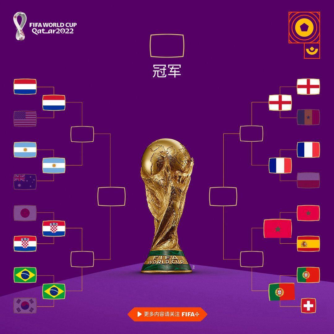 上半區對陣分別是阿根廷VS荷蘭,巴西VS克羅地亞;而下半場對陣則是法國VS英格蘭,葡萄牙VS摩洛哥。