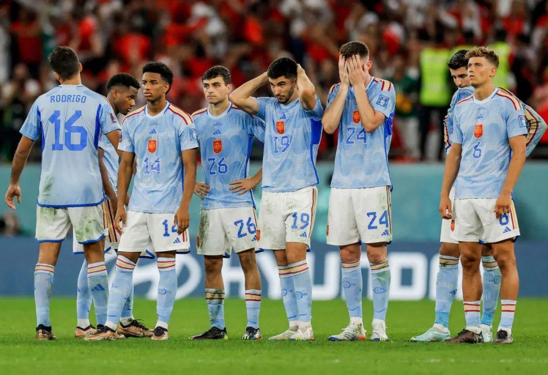點球大戰不敵摩洛哥,是西班牙隊連續3屆世界盃止步16強。在2008-2012年的巔峯期後,西班牙足球儘管湧現了佩德里、加維、法蒂、E·加西亞等新人,但在成績上始終未能有進一步突破。