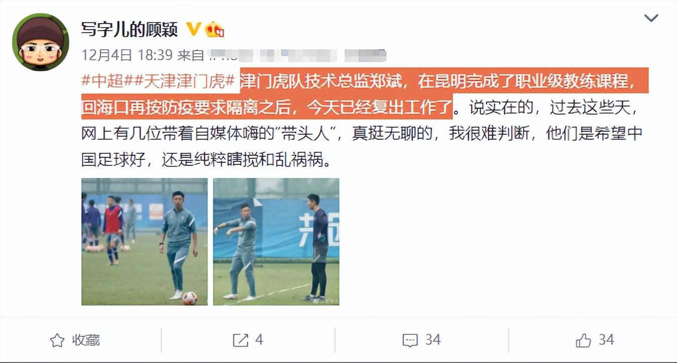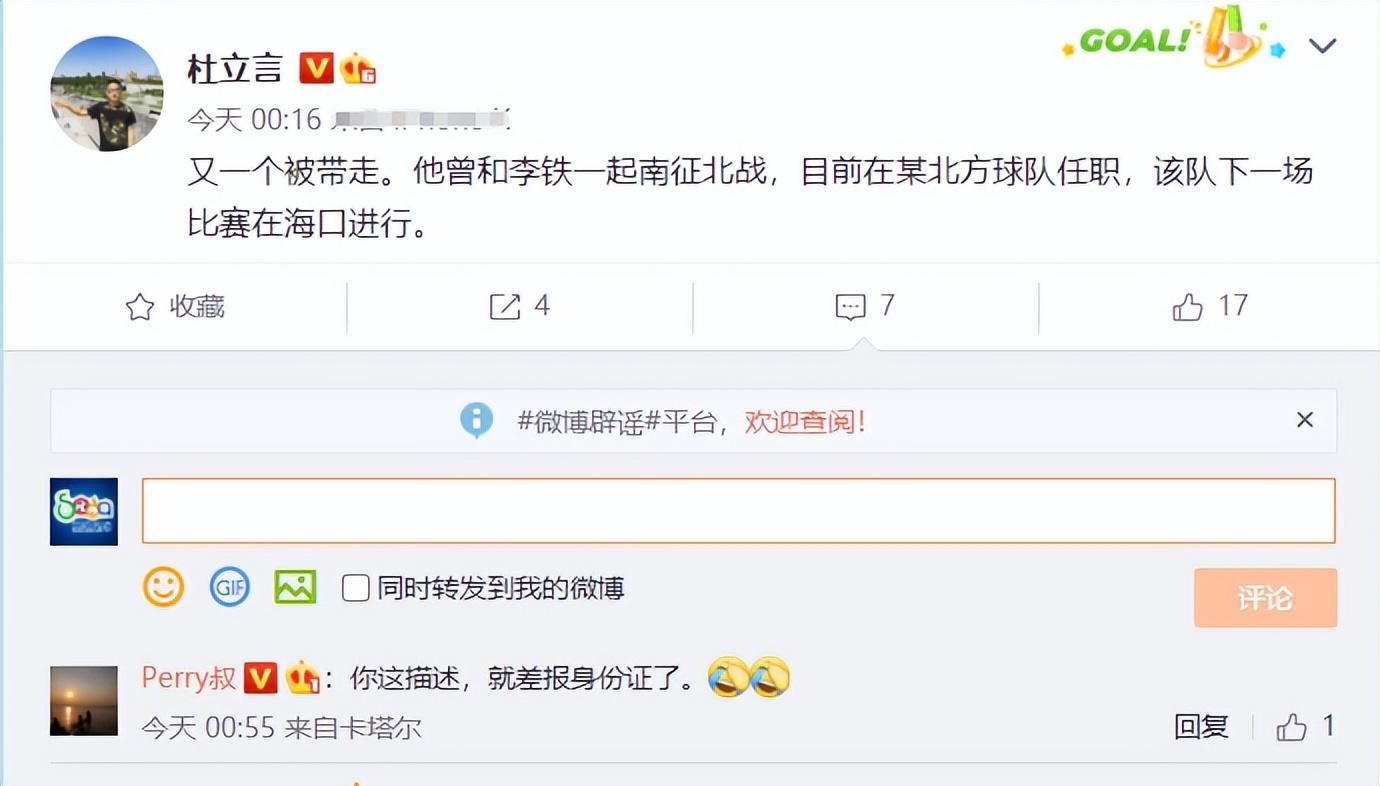 媒體人李璇給出兩條線索,前幾天剛回到公衆視野中,以及在中超某俱樂部任職。而另一位媒體人杜立言給出的3條線索是,跟李鐵一起南征北戰、在某北方俱樂部任職,該隊下一場比賽在海口踢。記者裴力直言,這其實也就差報身份證了。