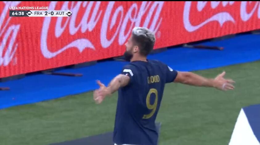 北京時間9月23日02:45,歐國聯A1組第5輪,姆巴佩首開記錄,35歲的吉魯在9分鐘內完成1傳1射,最終世界盃冠軍法國隊主場2-0戰勝奧地利,收穫首勝。