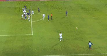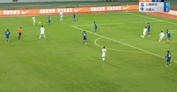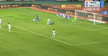 第48分鐘,朱建榮利用定位球,在禁區右側小角度打門得手,上海申花1-0領先大連人。