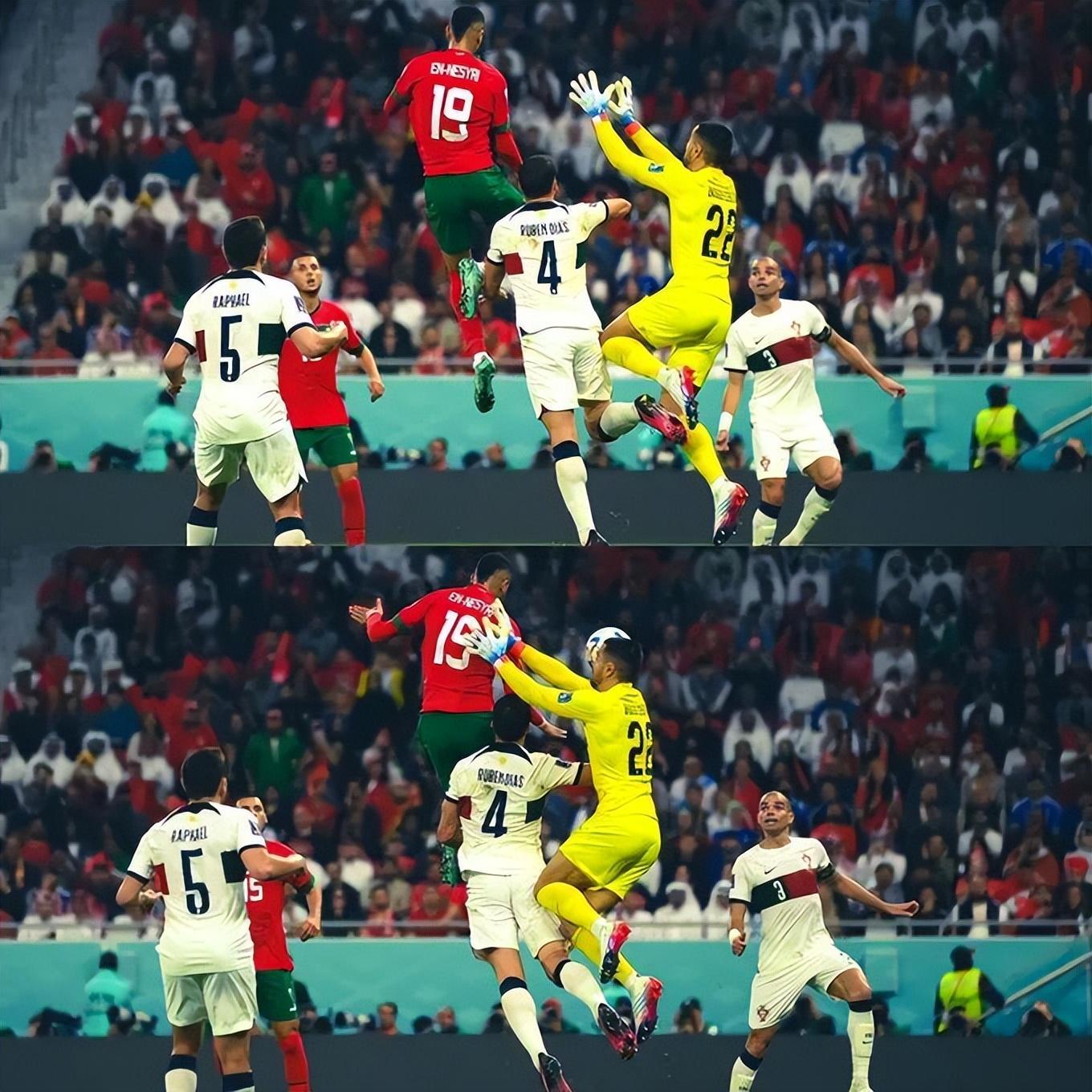 記者王少恆報道 圖瑪瑪球場,第96分鐘,皮球再一次飛過摩洛哥的禁區,飛過37歲C羅的頭頂,39歲的佩佩在小禁區角上頂出一記頭球,這是葡萄牙人在本屆世界盃上的最後一次射門。皮球偏出,摩洛哥門將布努甚至沒有做出撲救動作。葡萄牙人全場射門12次,其中9次都像這次一樣。