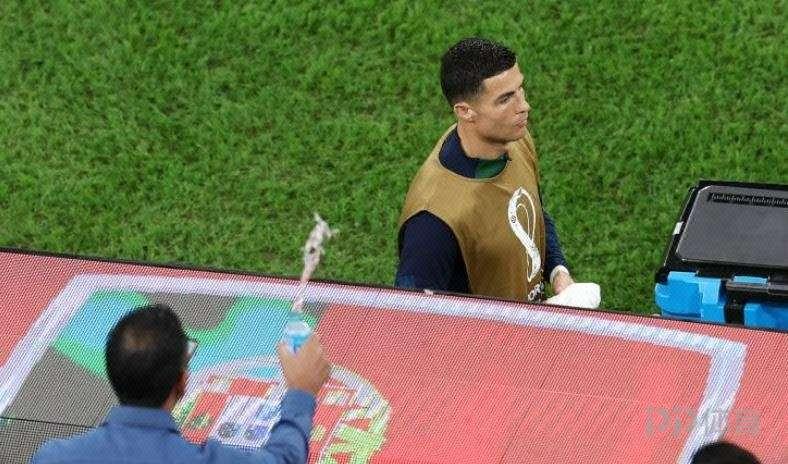 葡萄牙VS摩洛哥的1/4決賽中場休息,有一名球迷朝C羅潑水。
