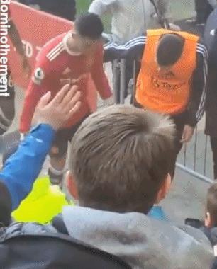 當然,C羅其實還算是一個優質偶像,對球迷還是很友好的。其中有一次,葡萄牙球員先後跟坐輪椅的小女孩擊掌致意,只有C羅停了下來,彎腰跟對方合影。