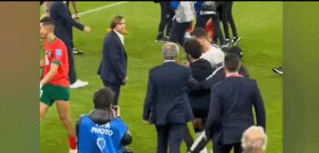 世界盃1/4決賽,37歲的C羅替補登場難救主,最終葡萄牙0-1不敵摩洛哥出局。賽後,C羅含淚離場。而在走回球員通道的路上,還出現了一個小插曲,那就是C羅疑似再次對球迷動手。從第一個視覺來看,確實有點。
