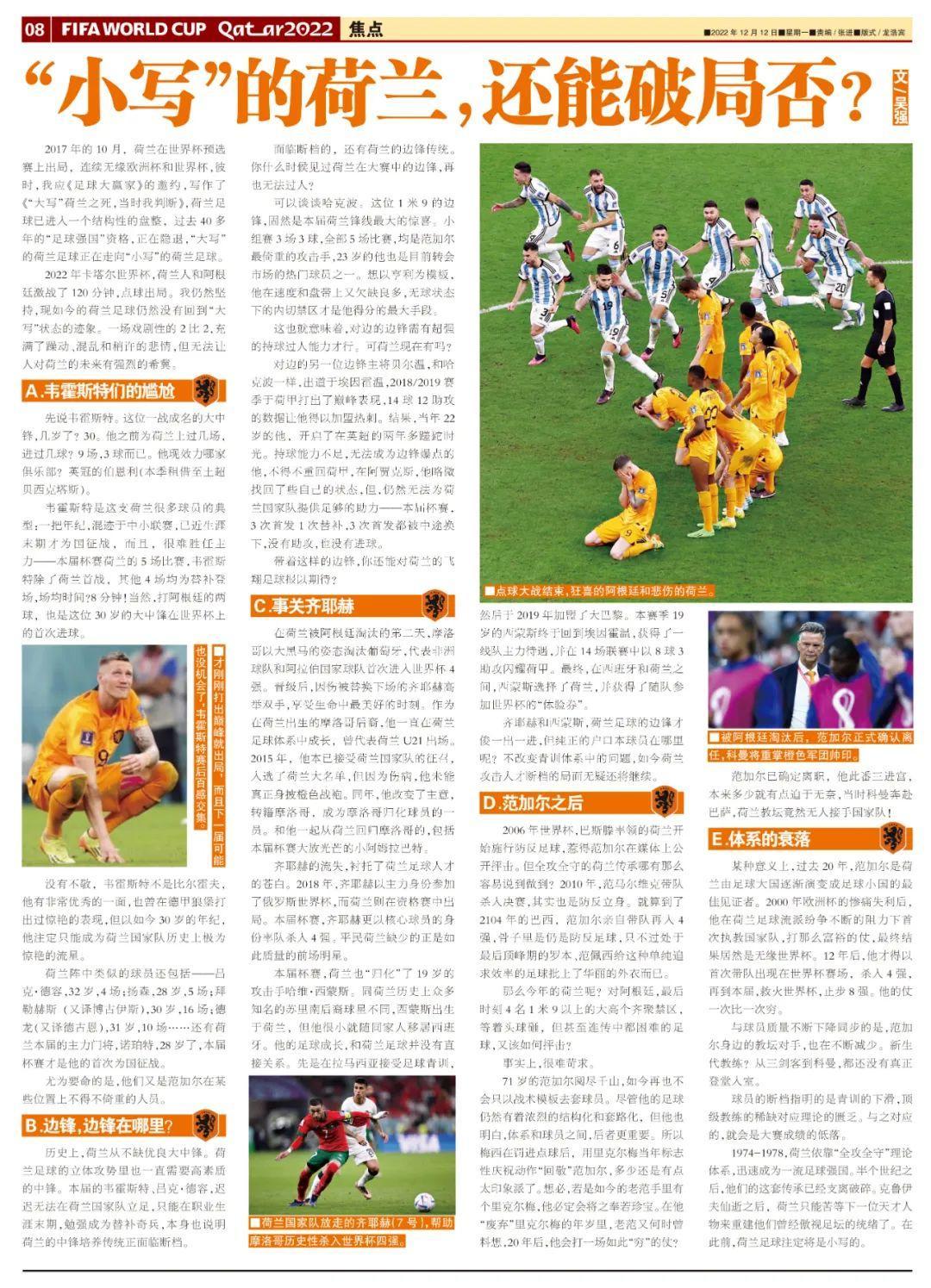 2022年卡塔爾世界盃,荷蘭人和阿根廷激戰了120分鐘,點球出局。我仍然堅持,現如今的荷蘭足球仍然沒有回到“大寫”狀態的跡象。一場戲劇性的2比2,充滿了躁動、混亂和稍許的悲情,但無法讓人對荷蘭的未來有強烈的希冀。