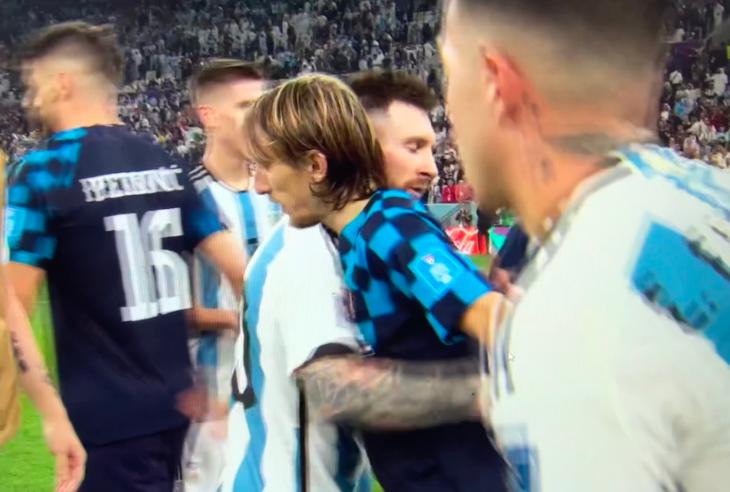 莫德里奇在第81分鐘被換下,當時阿根廷球迷爲他送上了掌聲。而在賽後,阿根廷三位巨星梅西、迪馬利亞和阿圭羅,也輪番上前給莫德里奇一個擁抱。