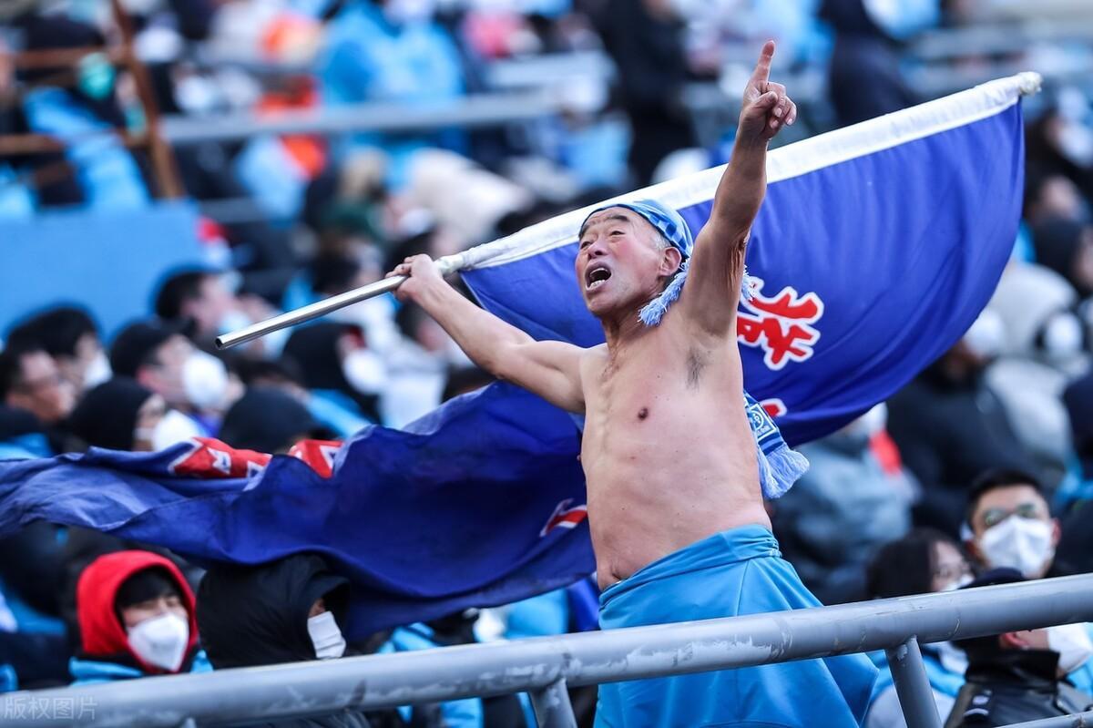 北京時間2022年12月14日進行的中超第31輪聯賽中,大連人隊主場球迷熱情高漲,爲球隊吶喊助威。知名球迷王大爺不懼嚴寒,赤膊上陣,爲主隊搖旗吶喊。