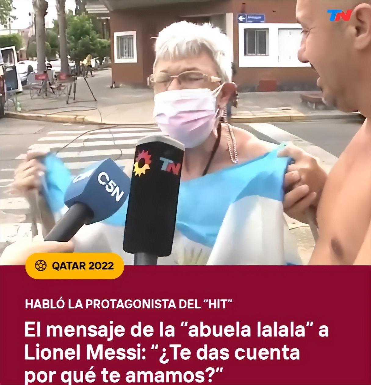 在世界盃首輪遭沙特2-1逆轉後,阿根廷連過5關,最終時隔8年重返決賽。在阿根廷國內,有一位“啦啦啦奶奶”火遍全網,連當地電視臺也到現場爲她做採訪。
