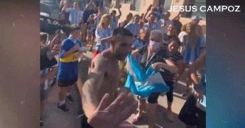 而在世界盃半決賽淘汰克羅地亞後,阿根廷球迷又到梅西祖母家樓下慶祝,梅西祖母就在窗口旁邊靜靜看着。