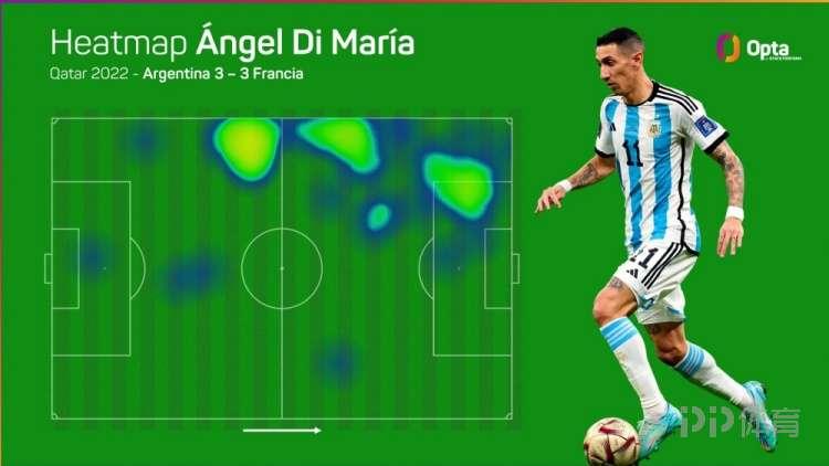 在北京時間今天凌晨結束的世界盃決賽中,迪馬利亞首發出戰造點並在反擊中破門,最終阿根廷在點球決戰中擊敗法國,贏得冠軍。迪馬利亞第64分鐘被換下,據Opta統計,此役上半場阿根廷43%的進攻來自於左路區域,以迪馬利亞爲主導。