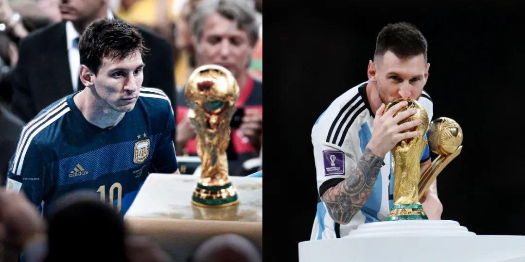 在領取本屆世界盃金球獎的路上,梅西光明正大地親吻了大力神杯。八年前,他和它留下了催淚的合照;八年後,在命運的安排下,他和它渾然一體。