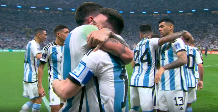 下半場加時賽第3分鐘,勞塔羅禁區右側小角度打門被洛裏撲出,梅西跟上補射破門完成梅開二度,阿根廷將比分改寫爲3-2。