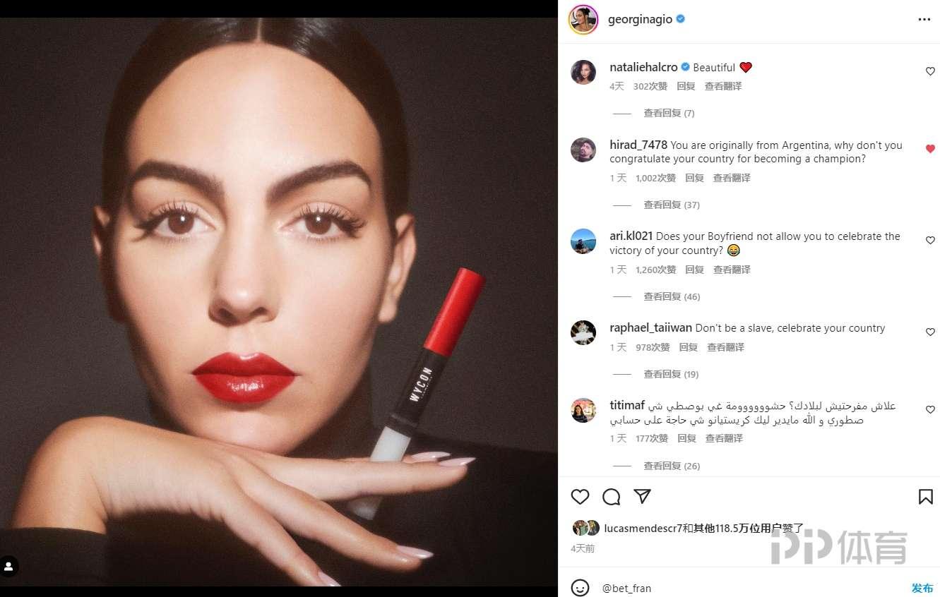 阿根廷擊敗法國奪得卡塔爾世界盃冠軍,不少網友在C羅的阿根廷女友喬治娜社媒刷屏留言,質疑她爲何沒有慶祝阿根廷奪冠。