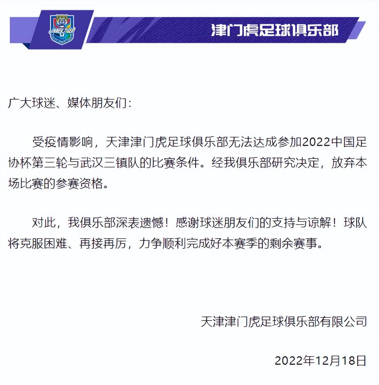 此前對三鎮的足協盃,津門虎主動棄賽,最終被判0比3負,對於球隊來講,這是無可奈何,也是明智的決定。畢竟,一線隊隊員出現了不同程度的發燒症狀,根本無法湊齊比賽需要的人數。