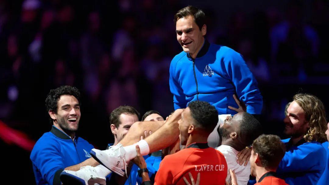 發言完之後,費德勒和場邊歐洲隊的隊友一一擁抱,然後所有球員走到場上,將費德勒高高舉起,最後費德勒獨自環繞全場和球迷致意,家人隨後也進入場中和他擁抱,退役儀式就在這樣一個傷感但又溫馨的氛圍中結束了。