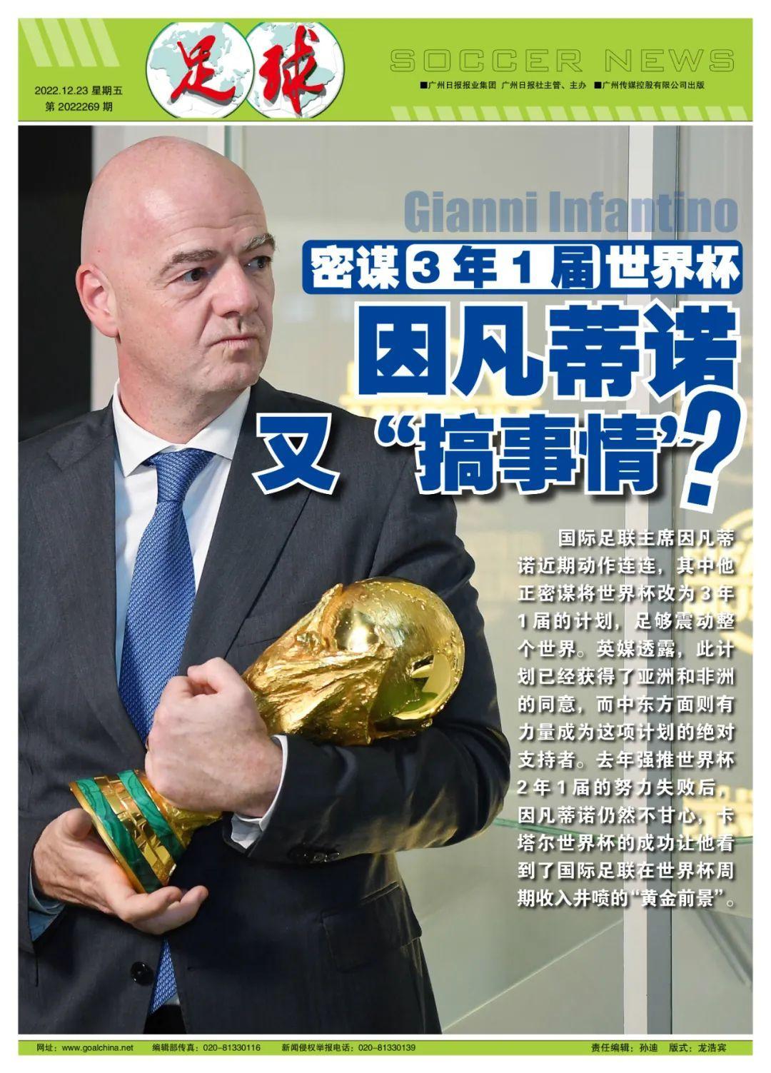 根據《鏡報》等多家英媒報道,因凡蒂諾在卡塔爾世界盃期間,密謀重啓縮短世界盃週期的計劃,擬從4年1屆變爲3年1屆。英媒透露,此計劃已經獲得了亞洲和非洲的同意,而中東方面有力量成爲這項計劃的絕對支持者。
