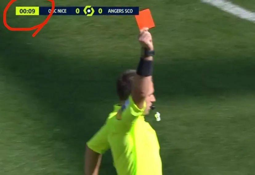主裁判也是毫不猶豫,直接掏出了紅牌,而此時距離比賽開場僅僅過去了9秒鐘……