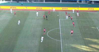 第11分鐘,梅州客家前場開出邊線球,武卡諾維奇禁區內得球回做,茹子楠禁區外右腳轟出一記世界波,幫助梅州客家1-0領先長春亞泰。