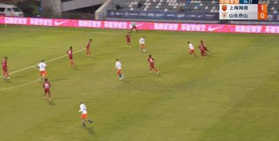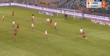 第9分鐘,卡隆右路起球傳中,恩迪亞耶近距離俯身衝頂破門,上海海港1-0領先山東泰山。